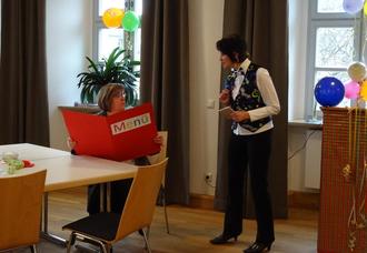 Mit kurzen Sketchen und Witzen unterhielten Gabi Holfelner und Johanna Grünauer die Frauen Monika Kuhn sorgt für das Gedicht "Die Bohnensuppe" für große Erheiterung.