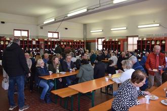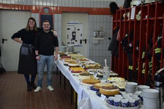 Ein Großteil der Gäste blieb aber im Feuerwehrhaus sitzen, um sich eine kleine Auszeit vom anstrengenden Wählen zu gönnen. Allerlei Torten und Kuchen sowie Herzhaftes gab es zum Genießen in der Fahrzeughalle oder zum Mitnehmen.