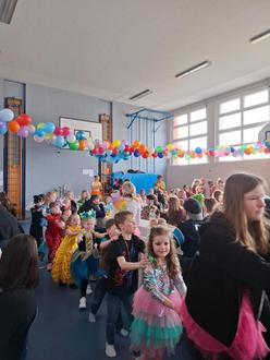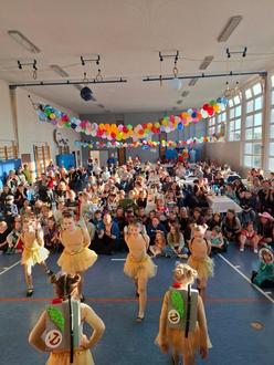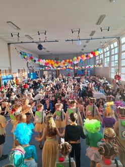 Bereits um 14 Uhr füllte sich die Schulturnhalle der Grundschule mit fröhlichen Kindern in bunten Kostümen, die voller Vorfreude auf das Fest waren.