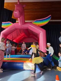 Wie in jedem Jahr war die Hüpfburg ein echter Kindermagnet und sorgte für strahlende Gesichter und viel Spaß. Die Kombination aus Musik, Tanz und Spiel machte den Kinderfasching zu einem unvergesslichen Erlebnis für alle Beteiligten.