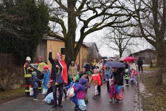 Kaum schlug die „nichtvorhandene Kirchenuhr der Dorfkapelle“ zwei, gab es in Albersrieth trotz leichtem Regen kein Halten mehr: Schmissige Musik und ein vielstimmiges „Albersrieth Helau“ kündigten an, dass der Albersriether Kinderfaschingszug 2026 wieder das Kommando übernommen hatte.
