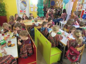 Doch damit war die Feier noch lange nicht vorbei: Zurück in der Kita wurde bei stimmungsvoller Musik weitergetanzt. Beim gemeinsamen Essen stärkten sich kleinen Peruaner, Schnecken, Dschungeltiere und Forscher für die nächste Polonäse, die immer wieder fröhlich durch die Räume zog.