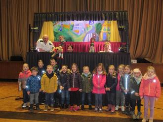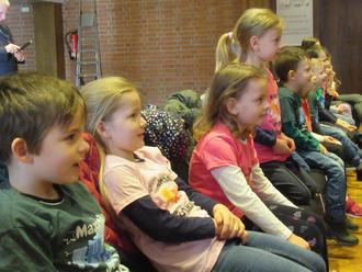 Wir Vorschulkinder besuchten am 28.03.2023 die Polizeipuppenbühne mit dem Stück: „Der verzauberte Kaspar“ in Vohenstrauß. Vormittags begaben wir uns mit dem Bus auf den Weg, was für uns jedes Mal wieder etwas besonderes ist. An der Stadthalle angekommen, machten wir es uns auf den Sitzplätzen in der letzten Reihe bequem und hatten somit einen prima Blick auf die Bühne. Gleich darauf ging die Vorstellung auch schon los. Das Polizeilied war der Einstieg, zu dem wir kräftig mitsangen und klatschten. Das Licht ging aus und die Figuren „Kaspar“ und „Wuschel“, der Polizeihund, stellten sich uns vor. „Kaspar“ berichtete uns, dass er sich „ganz neben der Spur“ fühle und kurz darauf fanden wir den Grund dafür heraus. Die Hexe „Wackelzahn“ hatte unseren Freund verhext und dieser Bann konnte nur gebrochen werden, wenn „Kaspar“ drei Verkehrsaufgaben richtig bewältigte. Kurzerhand entschlossen wir uns Kinder, ihn dabei mit unserem Verkehrswissen zu unterstützen. So konnte uns die Hexe nicht einmal mit dem Verschwinden der Ampel überlisten! Den Sieg feierten wir mit Jubelschreien und erhielten als Überraschung ein Ausmalbild von „Wuschel“. Vielen Dank an die Beamten der Polizeipuppenbühne, sie hauchten den Puppen Leben ein und faszinierten die Kinder. Der Bus brachte uns wieder zum Kindergarten zurück und wir erzählten unseren Freunden von dem aufregenden Erlebnis.