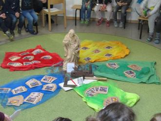 Die Kinder und Mitarbeiterinnen der Kindertagesstätte St. Josef feierten am Montag, den 20.03.23, das Namensfest des Patrons St. Josef. In den Wochen davor hatte man schon viel mit den Kindern über den Hl. Josef gesprochen. Dabei wurden etliche Fragen über Josef ge- und erklärt: Wer war dieser Mann? Was war seine Aufgabe? Was hat er gearbeitet? Warum ist St. Josef für uns so wichtig? Als die Feier los ging und Hr. Pfarrer Götz den Kindern Fragen stellte, konnten sie alle Fragen über Josef beantworten. Voller Freude haben die Kinder das „Josef-Lied“ und „Möge der Segen Gottes mit dir sein“ gesungen. Dabei wurden die Kinder instrumental von Leiterin Sonja Kick mit der Gitarre und Erzieherin Martina Lorenz mit dem Akkordeon begleitet. Die Vorschulkinder haben auch ihr Gebet vorgetragen, dass sie in den letzten Tagen fleißig geübt hatten. Die Kinder hörten interessiert die Geschichte über Josef an, die ihnen Herr Pfarrer Götz erzählte. Er erzählte, dass Josef Jesus beschützte und sich um ihn kümmerte. Josef soll auch jetzt uns behüten und beschützen. Zum Abschluss bekam jedes Kind eine Karte mit dem Josefs-Gebet auf der Rückseite. Für die Vorderseite wurden eigens Fotos mit den Kindern und einer Figur des Hl. Josef angefertigt.