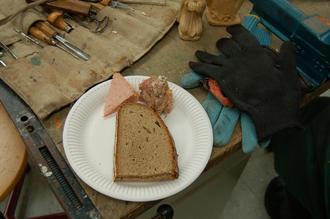 Dass sich nicht nur Holz schnitzen lässt, wird nach einer kurzen Einweisung mit eingehenden Übungen vertieft.,