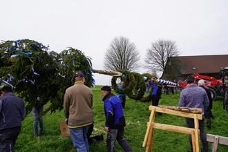 Das Maibaumaufstellen ist in Albersrieth ein wahres Dorfereignis mit viel Präzision und Wohlfühlcharakter. Unter der souveränen Regie von Dorfchef Andreas Bodensteiner und unter der Aufsicht so mancher Dorfälteren wurde der 33,51 Meter – Baum am frühen Abend der Walpurgisnacht nach alter Tradition in die Senkrechte gebracht.