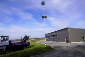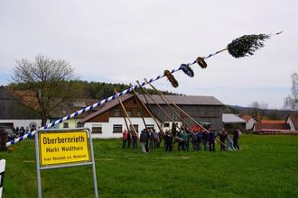 Oberbernrieth An der Auffahrt zum Fahrenberg auf der Kannes – Wiesn hat die Feuerwehr Bernrieth am 1. Mai ihren Maibaum aufgestellt. 30 starke Männer machten sich nach dem Mittagessen daran, den Baum im Ort, der auf über 700 Meter Meereshöhe liegt aufzustellen. Der 26 Meter lange Baum dürfte somit wohl der höchste in der Fahrenbergregion aufgestellte Baum sein. Unter der Regie von Holzfachmann Albert Wüst ragte der Baum schnell in die Höhe, der Applaus der anwesenden Zuschauer und Dorfbewohner war den starken Leuten nach getaner Arbeit sicher.