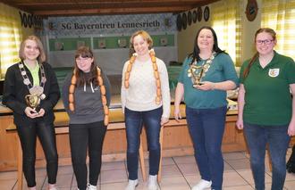 Frauen-Power beim 49. Gemeindeschießen. Von links: Jugendschützenkönigin Sophia Kleber, Jugendvizeschützenkönigin Marie-Christin Wallmeyer, Gemeindevizeschützenkönigin Monika Kleber, Gemeindeschützenkönigin Christina Lukas und Bayenrtreu - Sportleiterin Lena Kellner