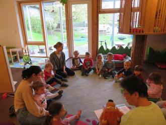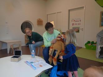In einem interaktiven Besuch erklärte Zahnärztin Frau Dr. Reis den Krippen- und Kindergartenkindern die Bedeutung einer guten Zahnpflege. Mit der Löwenhandpuppe „Dentulus“ und einem Spruch „Hin und her, hin und her, Zähneputzen ist nicht schwer!“ vermittelte sie spielerisch die richtigen Putztechniken. Auch die Bedeutung einer gesunden und zuckerarmen Ernährung brachte die Zahnärztin den Kindern näher.