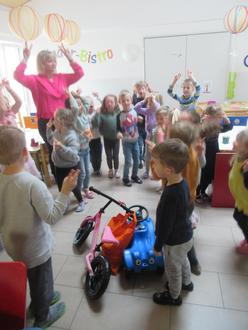 Die Kinder und Erzieherinnen bedankten sich beim Team der „Herbstsonne“ mit einem Osterhasenlied und einem Osterhasentanz.