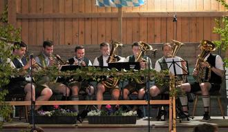 Felix Griesbach vom Lennesriether Haselranken hatte seine Musikerfreunde Julian Bauer, Jonas Kraus, Max Steiner, Konstantin Stahl, Andreas Holfelner und Julian Steiner eingeladen. Sie spielten mit ihren Blasinstrumenten auf, dass der Veinstodl wackelte. Der von „Consti“ Stahl komponierten Türmermarsch durfte nicht fehlen. Ein „Oh leck…“ entriss es dem Moderator vor Begeisterung, als die sieben jungen Musiker den „Fliegermarsch“ aufspielten.