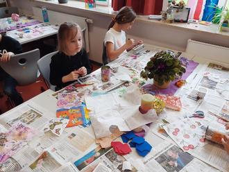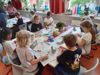 Beim jüngsten Aktionstag der Mittagsbetreuung stand der Muttertag im Mittelpunkt. Nachdem alle Kinder eine Einladung zu diesem Bastelnachmittag erhalten hatten, meldeten sich 13 Kinder an. Nach dem gemeinsamen Mittagessen ging es dann los.