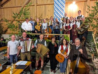 Die Trachtenkapelle brachte schon mal Stimmung in den Stadl, dann waren die Eisbergmusikanten mit ihrem Leiter Dr. Harald Piehler an der Reihe. Er spielt die Knopfharmonika und hat als mit Mitstreiter einen Schifferklavierspieler und einen Kontrabass an der Seite. Gitarrist Peter Ermer spielte kurzerhand als vierter Musikant mit auf.Lauter hervorragende Musikanten, die alle um den Eisberg herum bei Moosbach zu Hause sind. Anschließend war der Sitzweilgesang mit Monika Kunz und Inge Härtl auf der Bühne.