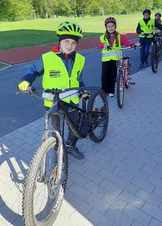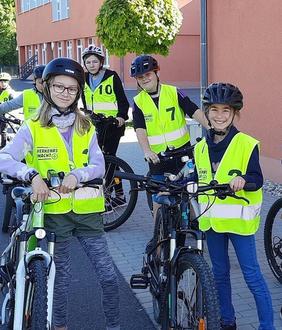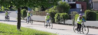 Nun radelten die Mädchen und Jungen sicher und selbstbewusst in der Verkehrswirklichkeit. Dabei ging es bergauf und bergab, über den Marktplatz, durch einige Straßen Waldthurns und wieder zurück zur Schule.