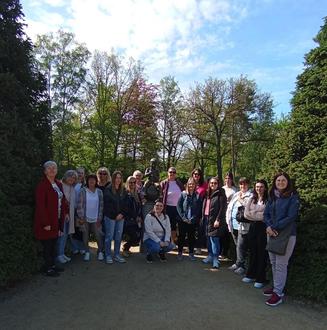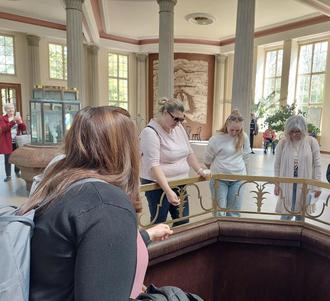 Am 10.05.24 machte sich das Personal der Kindertagesstätte Waldthurn auf dem Weg, um sich mit den Mitarbeiterinnen des Kooperations-Kindergartens aus Hostau – Lenka Jopková, Hana Fujanová, Kristýna Budinská Špechtnerova, Václava Boanová und Miluše ábilova - zu treffen. Das Personal aus beiden Einrichtungen traf sich dazu in Franzensbad bei Eger. Lenka Jopková (Leitung Hostau) hatte eine kleine Tour vorbereitet und zeigte uns viele Sehenswürdigkeiten dieses fabelhaften Ortes. Vor allem bekannt ist dieser Ort wegen seinen 24 heilenden Quellen. Zwei der so genannten Trink- Hallen wurden besichtigt, manche probierten auch das heilende Wasser. Eine weitere Sehenswürdigkeit ist die Skulptur des „Franzel“. Sie gilt als Symbol des Kurortes. Schön anzusehen war auch das Stadtbild, mit seinen Gebäuden aus dem 19. Jahrhundert, die größtenteils in Schönbrunner Gelb und Stuckweiß gehalten sind. Im Laufe des Tages besichtigten wir noch viele weitere Sehenswürdigkeiten. Dabei wurden wir von Karolina Němcová (Kita St, Josef) und Lenka Jopkova (Hostau) immer bestens über die Geschichte informiert. Karolina und Hana Fujanová haben immer wieder für alle übersetzt. Zum Abschluss dieses interessanten Vormittags aßen wir alle gemeinsam noch zu Mittag. Danach machten sich Waldthurner und Hostauer wieder auf den Heimweg.