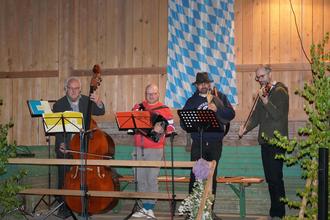 Schließlich marschierten die Lennesriether Stodlmusikanten, darunter Sitzweil – Organisator Hans Pausch, mit Kontrabass, Akkordeon, Sackpfeife und Geige,