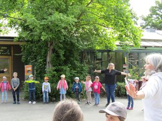 Für die Begrüßungsrunde lernten wir ein deutsch/tschechisches Begrüßungslied „Dobry den“ – „Guten Tag“. Nach der netten Begrüßungsrunde machten wir uns gemeinsam auf den Weg zu den Tieren.