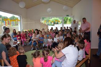 Umrahmt wurde diese Feierstunde von den 70 anwesenden Kindergartenkindern mit Liedern - begleitet von Martina Lorenz am Akkordeon.