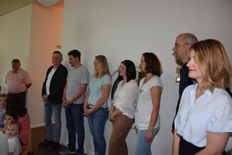 Auch die vierte Klasse der Grundschule mit Rektorin Carina Hartwig zählte zu den Gästen. Sie brachten als Geschenk ein Lied mit, welches die Segnung der neuen Räume herrlich abrundete.