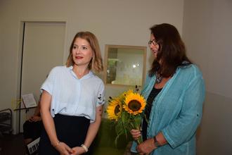 Zum Abschluss erhielt Sonja Kick als Anerkennung für die sehr gute Zusammenarbeit von Architektin Katrin Weidner einen Sonnenblumenstrauß zur Einweihung überreicht. „Nun können in den neuen wunderschönen Räumen täglich viele Krippenkinder mit großer Freude und Spaß unbeschwert spielen“, fügte die Architektin hinzu.