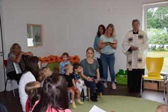 Endlich konnten nun am 23.06.2023 die neuen Räume der Kinderkrippe eingeweiht werden. Pfarrer Norbert Götz segnete im Beisein aller 26 Krippenkinder die neuen Räumlichkeiten.
