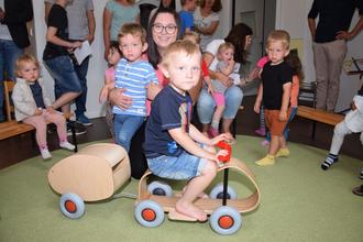 Dabei durfte ein besonderes Geschenk der Architekten für die Krippenkinder nicht fehlen. Das mitgebrachte tolle Holzauto mit Anhänger wurde sofort in Beschlag genommen und von den Kindern mit leuchtenden Augen getestet.