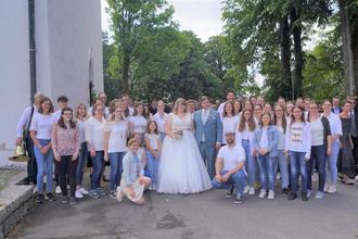 Im wahrsten Sinne des Wortes mit Pauken und Trompeten sowie begeisternden, erfrischenden Gesang heirateten Anja Riedl aus Albersrieth und Daniel Schönberger aus Schönkirch in der Wallfahrtskirche am Fahrenberg.