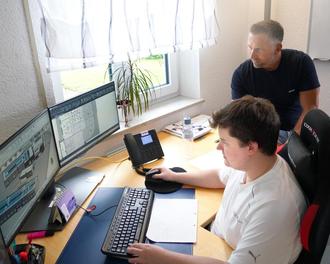Technischer Systemplaner Sandro Reil (links) bei der Arbeit.
