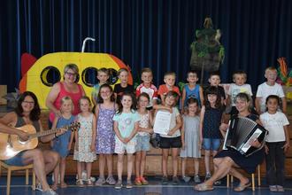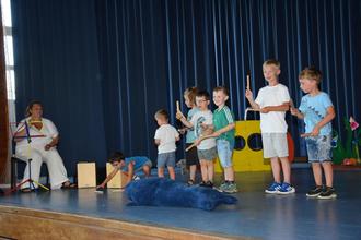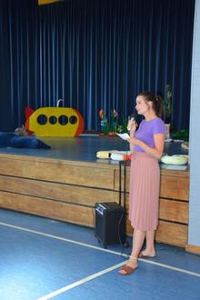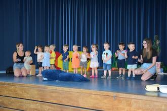 Die Rote Gruppe tanzte den Meerjungfrauen-Tanz und präsentierte das Lied vom Buckelwal, während die Blaue Gruppe mit „Fünf kleine Fische“ das Publikum in ihren Bann zog. Die Gelbe Gruppe zeigte vollen Einsatz beim „Körperteil-Blues“ und beeindruckte die Zuschauer mit ihrer Energie und viel Rhythmusgefühl.