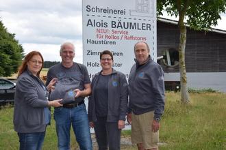 Vorstand Roman Bauer machte sich am Montagnachmittag mit Petra Müller (Beisitzerin) und Sonja Bäumler (Beisitzerin) auf den Weg. Gemeinsam überreichten sie Alois Bäumler eine der ersten neuen Sweatshirt-Jacken und dankten dem Spender herzlich für diese großzügige Geste.