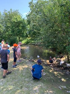 Sie konnten dort Ziegen, Kälber und kleine Kätzchen streicheln und hörten begeistert zu, wenn der Truthahn lustige Geräusche von sich gab. Das war ein lehrreicher und spannender Schulvormittag am Bauernhof!