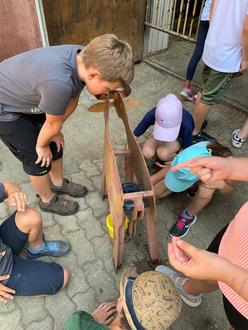 Dort angekommen wurden den Schülerinnen und Schülern verschiedene Aufgaben gestellt. Sie mussten Getreidekörner unterscheiden, Lebensmittel den entsprechenden Getreidepflanzen zuordnen, erkennen, von welchen Tieren die jeweiligen Eier stammten und sogar an einer Kuhattrappe melken.