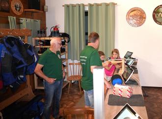 Sportlich ging es im Waldthurner Schützenhaus und nebenan zu. Der Waldthurner Schützen mit Theresa Fröhlich und Richard Arnold zeigten, wie man mit einem Blasrohr zielsicher mit dem Pfeil trifft.