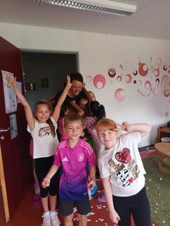 Mitte des Monats verabschiedete sich Christine Hörig von den Kindern und Kolleginnen der Mittagsbetreuung. Hörig war von Anfang an dabei, als im September 2013 die Mittags- und Hausaufgabenbetreuung an der Grundschule startete. Im elften Jahr hat nun Christine Hörig ihre Mitarbeit im Team der MITTI beendet. Zu einer gemeinsamen Abschiedsfeier hatte sie alle Kinder, die dieses Jahr die gemeindliche Einrichtung besuchen, eingeladen und (fast) alle sind gekommen.