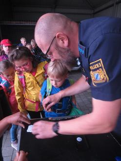 Der Polizist hatte mit Hilfe einer kurzen Geschichte den Kindern die wichtigsten Regeln erklärt und auch wie man sich im Straßenverkehr richtig verhalten soll. Dass Kinder einen Helm beim Fahrradfahren tragen sollen, ist für unsere Kinder mittlerweile selbstverständlich. Die Buben und Mädchen haben sich sehr gefreut, als Piehler die Waffe, die Handschellen, einen Schlagstock, ein Pfefferspray und eine ganz normale Zange gezeigt hatte. „So viele Sachen hast du an deinem Gürtel dran?“, staunten sie und alle waren begeistert, die Sachen aus der Nähe zu sehen.