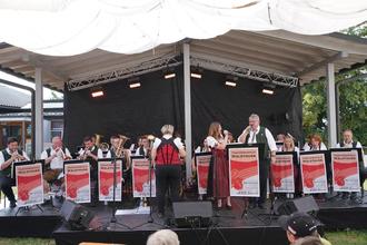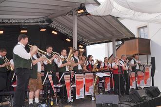 Das „Line-up“ – die Reihenfolge der auftretenden Künstler wollte es, dass die Trachtenkapelle Waldthurn unter der Leitung von Kornelia Kraus in das Blasmusik – Open Air einstieg. Die Waldthurner heizten zusätzlich zur Wärme des Tages den Zuhörern auch hier schon mächtig mit der Böhmischen Liebe und den böhmischen Geburtstagsgruß oder „Wir Musikanten“ ein.