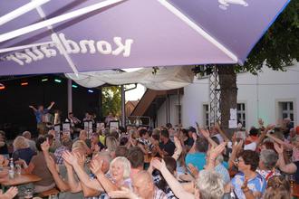 Dort wo Bürgermeister Josef Beimler am Eingang seinen Frühstückkaffee trinkt und sich seine Zigarillo anzündet, war die Bühne aufgebaut. Andy Fritsch aus Obertresenfeld sorgte für den guten Ton und am Abend für entsprechendes Ambiente. Manche wagten direkt vor dem Rathauseingang ein Tänzchen.