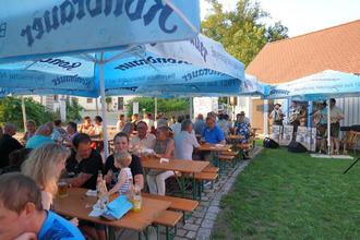 Schließlich konnte der agile Dorfrat um Dorfsprecher Andreas Bodensteiner zum weltlichen Teil des Tages am Dorftreff einladen. Viele Gäste, Einheimische aber auch ehemalige Albersriether waren gekommen. Vom Bocklradweg kamen so manche Gäste und stärkten sich. Bastian Bäumler und Fabian Klotz spielten auf, am Abend übernahmen die vier Hulzstoussboum mit Jonas Kraus, Andreas Holfelner, Julian Bauer und Lokalmatador Konstantin Stahl das musikalische Regiment.
