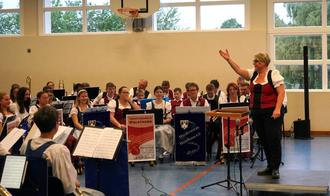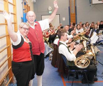 Nur die unterschiedlichen Farben ihrer Musikerleibchen – grün und rot – ließen erkennen, wer von woher stammt. Durch das Programm führten charmant Kornelia Kraus und Hans-Peter Reil, Letzterer mit gewohnt humorvollen Anekdoten.
