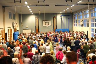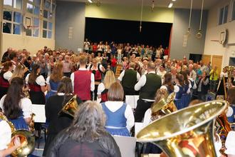 „Es ist eine besondere Herausforderung, ein derart großes Ensemble zu dirigieren“, so Hermann Mack, „doch die Musikerinnen und Musiker wuchsen über sich hinaus und verschmolzen trotz unterschiedlicher Vereinszugehörigkeit zu einem homogenen Klangkörper.“