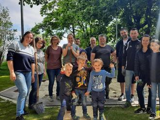 Nachdem dies getätigt war, startete 1. Bgm Schmidt einen Helferaufruf. Die überaus fleißigen Eltern und Kinder haben am 20. Mai 17,2 Tonnen Sand und 17,3 Tonnen Kies verteilt. Manfred Ducke und Tobias Schmidt schafften mit ihren großen Traktoren und Hänger das Material an und alles wurde mit Schubkarren transportiert und von Hand geschaufelt und verschafft. Da der Rollrasen bereits verlegt war, gestaltete sich das Unterfangen als ganz schön schwierig, schließlich sollte ja alles heil bleiben. Auch an dieser Stelle ein herzliches Dankeschön!