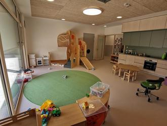 Fortan werden die "Biberbande" (Kinderkrippengruppe) und der "Dachsbau" (Kindergartengruppe) in der neuen Einrichtung betreut; diese waren zuletzt in der Containeranlage untergebracht. Außerdem wurde für die beiden Waldkindergartengruppen ein Schutzraum geschaffen, der auch Multifunktional genutzt werden kann.
