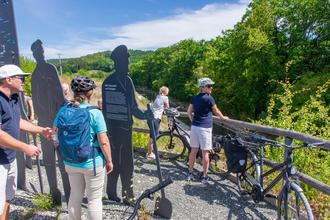 Ein Schwerpunkt sind die 16 Hörstationen auf den Infostelen und Figurengruppen entlang der historischen Trasse. An diesen Orten ist die Kanalgeschichte besonders gut zu erleben, wie an der Schleuse 100 in Bamberg oder der heute trockenen und sanierten Schleuse 94 bei Eggolsheim.