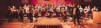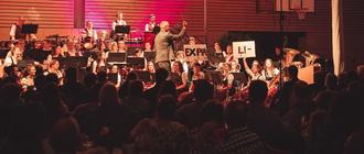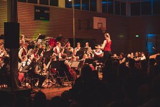 Zur Feier dieses 45-jährigen Bestehens hat man sich Einiges einfallen lassen. Obwohl man baustellenbedingt mit dem Veranstaltungsort in die Nachbargemeinde Frensdorf ausweichen musste, fanden zahlreiche Gäste den Weg und die Halle war restlos ausverkauft. Die freudige Erregung aller Musiker und Musikerinnen übertrug sich rasch auf das Publikum, das die Darbietungen mit langanhaltendem Applaus belohnte. Begeistern konnten schon die Kleinen aus der Bläserklasse unter Leitung von Falk Krause, welche die Zuhörer im Kanon Eselstöne singen ließen. Karin Wagner hat das Vororchester Pettstadt in den letzten Jahren zu einem leistungsstarken Ensemble weiterentwickelt, das seit 2023 zurecht seinen neuen Namen Jugendblasorchester führt. Zusammen spielten die jungen und die erfahreneren Musikerinnen und Musiker aus beiden Orchestern unter ihrer Leitung unter anderem Silver Creek Valley (Kees Vlak), was beinahe die räumliche Kapazität der Bühne sprengte.
