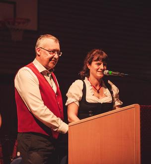 Damit er die Hände frei hat für seine Posaune, hat Michael Saffer seinen Platz am Dirigierpult des Symphonischen Blasorchesters Pettstadt bei diesem Konzert geräumt für den charismatischen Dirigenten Oberstleutnant Professor Michael Euler. Mit ihm hat sich das Symphonische Blasorchester einen hochkarätigen Gastdirigenten eingeladen. Der ehemalige stellvertretende Dirigent des Stabsmusikkorps Berlin war jahrelang Chefdirigent des Gebirgsmusikkorps in Garmisch-Partenkirchen sowie Chefdirigent der Big Band der Bundeswehr und ist derzeit als Chef des Ausbildungsmusikkorps der Bundeswehr tätig. Während die Musikerinnen und Musiker unter seinem Dirigat zu überzeugen wussten, brillierte Michael Saffer bei den Solostücken Trombone Concerto (Satoshi Yagisawa) und Czardas (Viotto Monti) an der Soloposaune. Einen besonderen Akzent an diesem Abend setzte der Auftritt des Männerchores, der nach der Coronapause unter der Leitung von Carina Heinzel wieder zu alter Kraft zurückgefunden hat. Gemeinsam mit dem Symphonischen Blasorchester brachten sie den Rauhe Ebrach Marsch zur Uraufführung, dessen Text und Melodie eigens für das Jubiläum vom ersten Vorsitzenden des Vereins, Mathias Usselmann, komponiert wurde. Im Rahmen des Konzertes wurden vom Bezirksvorsitzenden für Oberfranken und Vizepräsidenten des Nordbayerischen Musikbundes, Thomas Kolb, Ehrungen für verdiente Mitglieder des Musik- und Gesangvereins Pettstadt vorgenommen. Herausragend genannt sei hier die Ehrung von Erwin Hohl für bemerkenswerte 70 Jahre aktives Singen im Männerchor Pettstadt. Das abschließende gemütliche Beisammensein bei Unterhaltungsmusik live von der Bühne rundete den Jubiläumsabend stimmungsvoll ab.