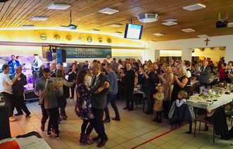 Nach der Proklamation drehte die Partyband Dochrinna mit Fabian Hollet als Frontmann nochmal eine Stufe höher und alle Gäste feierten eine ausgelassene Party. Bis in die frühen Morgenstunden ließen die Freihand-Schützen ihre neuen Majestäten in der Schützenbar hochleben.
