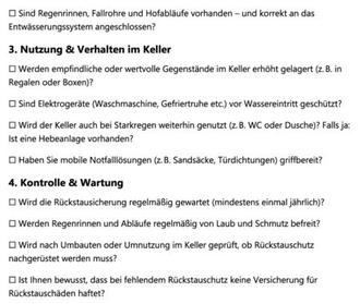 | • | Gibt es eine funktionierende Rückstausicherung (Rückstauklappe oder Hebeanlage)? |