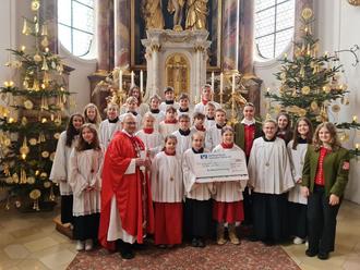 Die Ziemetshauser Pfarrkirche St. Peter und Paul wird zurzeit renoviert. Damit auch die Ministranten einen kleinen Beitrag dazu leisten, haben das Jugendgottesdienstteam der Ministranten im November mehr als 300 Weihnachtskarten gebastelt und diese während verschiedener kirchlicher Veranstaltungen, wie dem Jugendgottesdienst und dem Gemeindefrühstück, verkauft. Dadurch konnte ein Erlös von 500 Euro erzielt werden. Die Ministranten übergaben die Spende am 2. Weihnachtsfeiertag, während der von der Musikvereinigung Ziemetshausen feierlich gestalteten Messe, Herrn Pfarrer Endres. Dies ist zwar nur ein Tropfen auf den heißen Stein, es ist jedoch eine stattliche Summe zusammengekommen. Ganz herzlich möchten sich die Minis bei allen bedanken, die die Karten gekauft und zu dieser Spende beigetragen haben.
