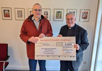 "Zum Jahresausklang hat Optiker Maximilian Seethaler eine Spende in Höhe von 5000 Euro zum Ankauf des Grundstücks, auf dem die Wallfahrtsgrotte von Maria Vesperbild steht, an Wallfahrtsdirektor Dr. Menzinger überreicht. Die willkommene Spende soll auch Dank an die vielen treuen Kunden des Hauses Seethaler in Ziemetshausen sein und die Zuneigung und Heimatverbundenheit zu Maria Vesperbild zum Ausdruck bringen."