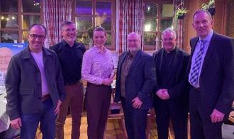 Bei der Vorstellungsrunde der CSU-Kandidaten für den Marktgemeinderat in Ziemetshausen zur Kommunalwahl im März 2026 haben sich zusätzlich auch einige Kandidaten auf der CSU-Kreistagsliste vorgestellt. Auf dem Bild sind von links nach rechts zu sehen: Tobias Bühler, Joachim Leitenmayer, Jenny Schack, Ralf Wetzel zusammen mit Wallfahrtsdirektor Dr. Menzinger und CSU-Ortsvorsitzenden Edwin Räder.